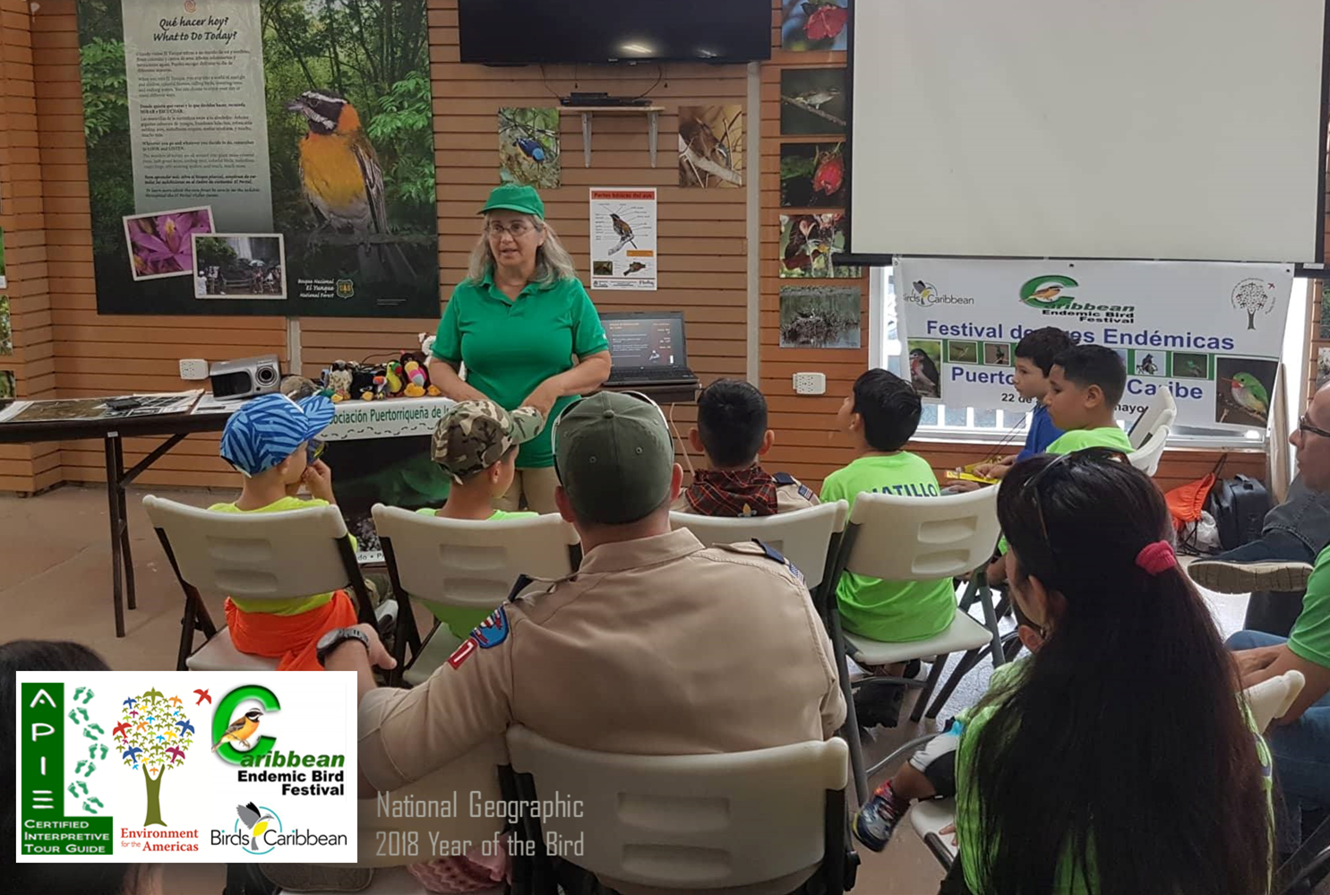 Since 2000 we have been volunteers of the Xmas Bird Count at El Yunque National Forest. In 2012 the Puerto Rican Association of Interpretation & Education (APIE) hosted two workshops (Interpretive Tour Guide Certification) at El Yunque. For the past three years, APIE has been active as a volunteer of Fundación Amigos de El Yunque celebration of the International Forest Day. In 2018 we will be offering talks, kid´s activities, and teacher´s training at the new El Portalito Hub as part of the Caribbean Bird Festival (April 22 - May 22).